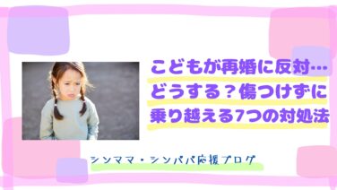 シンママ・シンパパのみなさん、元気ですかー?私は今日も元気です!今回は再婚をこどもに反対された時の対処法についてお届けします。「再婚したい人がいる」そう伝えたとき、子どもがはっきり「イヤ」と言った泣いて拒否する。無視をする。再婚相手を悪く言...
