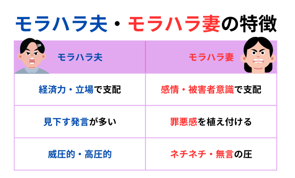 モラハラ夫・モラハラ妻共通の特徴はこちらです。